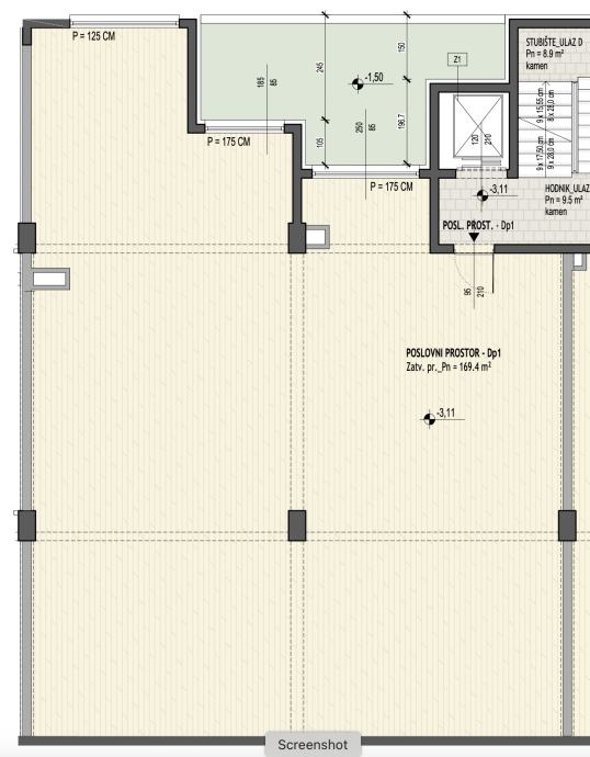 Split Mejaši, new construction, raw shell business space with a total area of 169 m2, suitable for various activities. Located on the basement level, sold by the investor company, with the price including VAT. The space requires finishing and adaptation to the intended use. There is an option to...