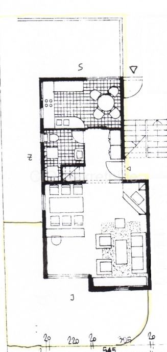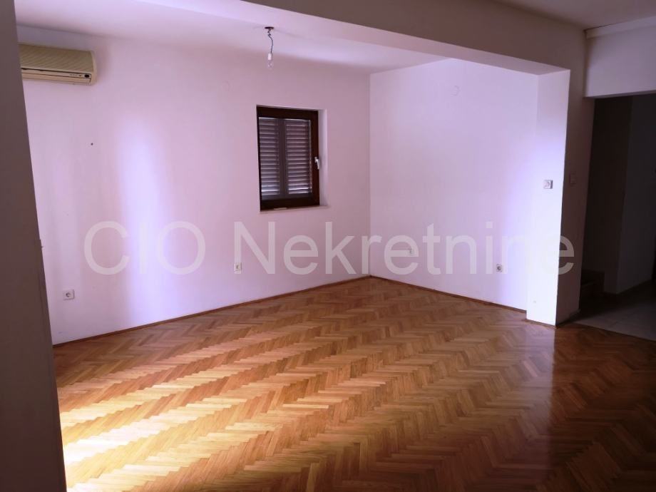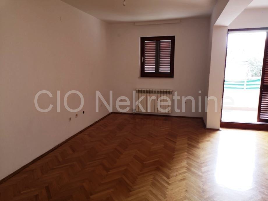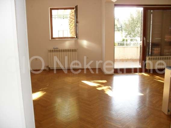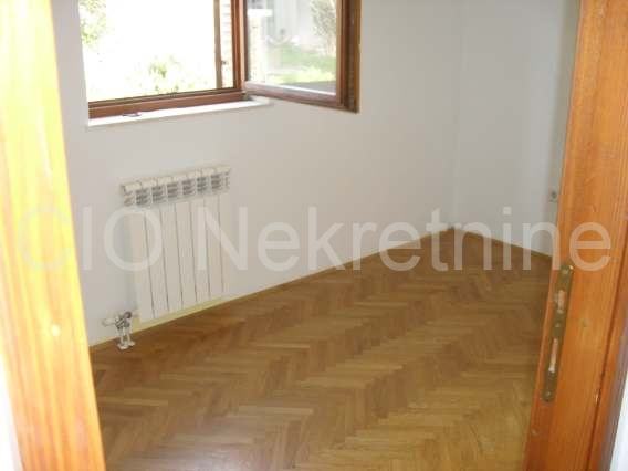 Prizemna etaža se sastoji od dnevnog dijela iz kojeg se izlazi na balkon, hodnika, kupaone, i kuhinje koja bi u prenamjeni mogla biti četvrta spavaća soba.