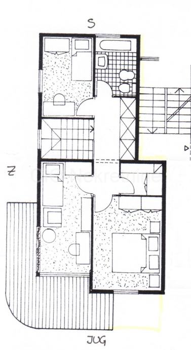 Etaža na prvom katu se sastoji od 3 spavaće sobe, garderobe i balkona.