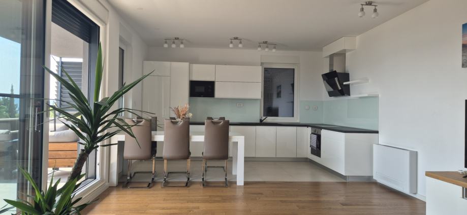 Stan ima otvoreni pogled na more, u navedenu cijenu je uključena ostava (drvarnica) te jedno garažno mjesto.