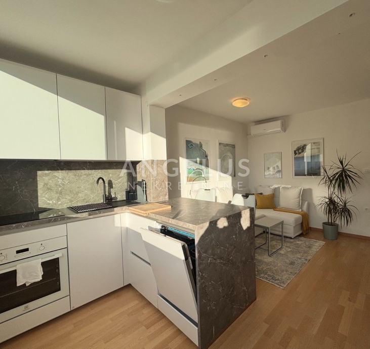 Iznajmljuje se prekrasan i novouređeni jednosoban stan ukupne neto površine od 43 m2 s terasom, položen na trećem katu manje stambene zgrade. Stan se sastoji od ulaznog hodnika, kuhinje i blagovaonice s dnevnim boravkom, jedne spavaće sobe, kupaonice i terase. Stan je moderno i lijepo uređen, nijansiran prekrasnim bojama namještaja i tkanina, klimatiziran i opremljen svim potrebnim uređajima i opremom. U predvorju zgrade nalazi se parking, koji je uvijek dostupan stanarima za parkiranje. Kao takav se iznajmljuje u dugoročan najam, minimalno jednu godinu. Idealan je za mlade parove i studente, te je slobodan od 01.11.2025. godine.