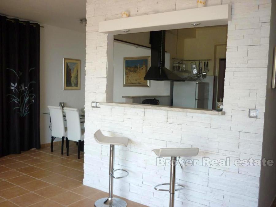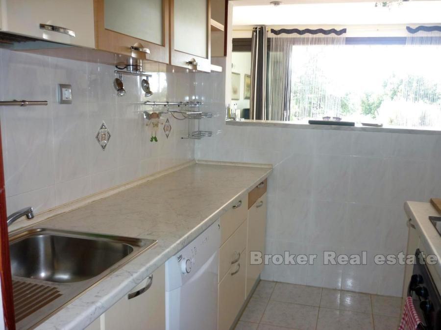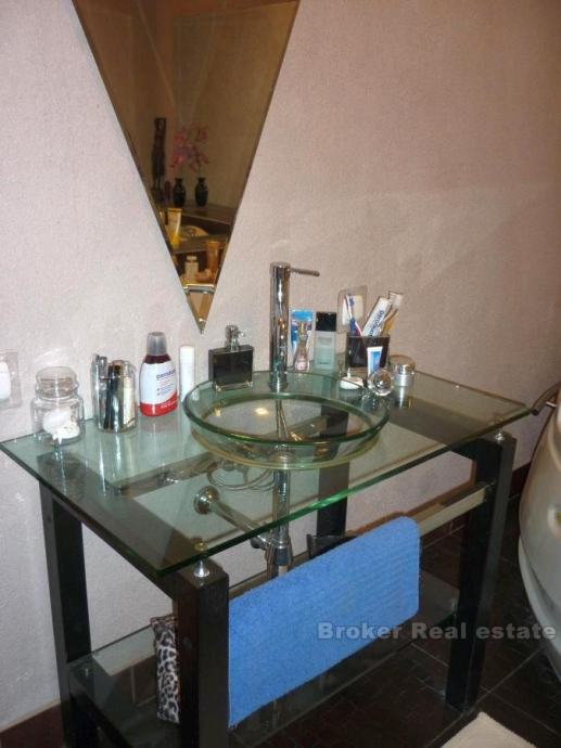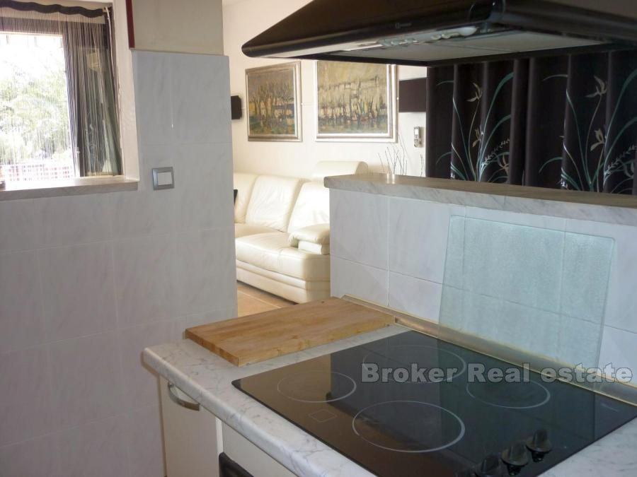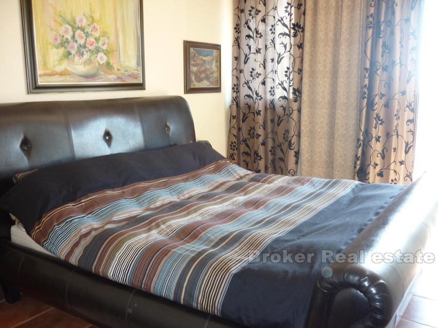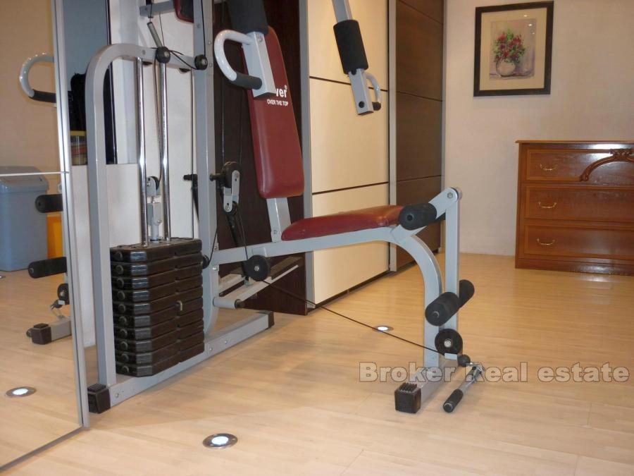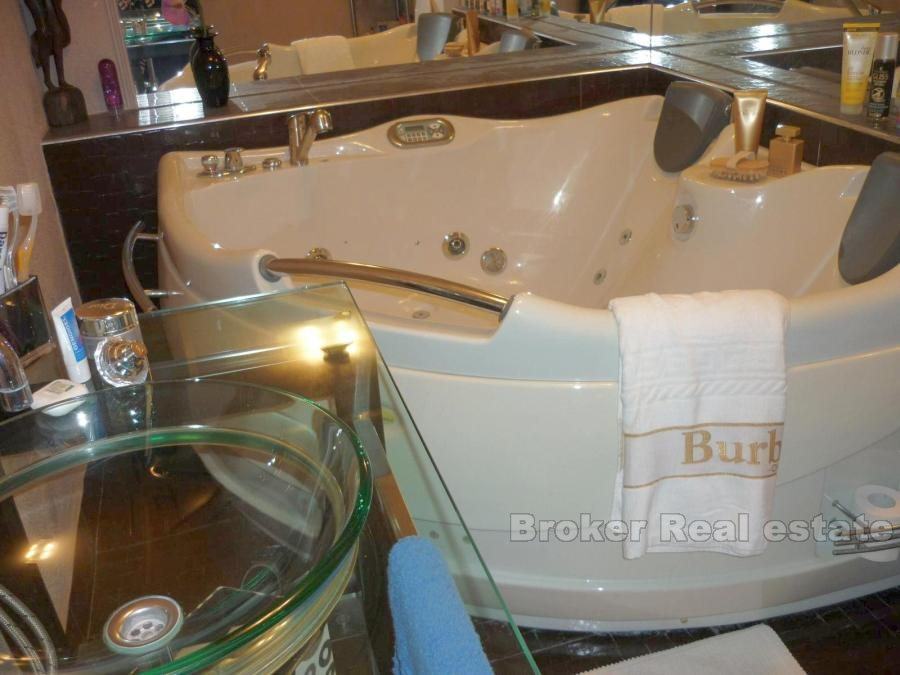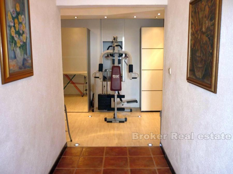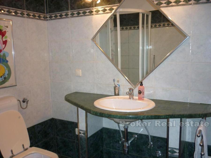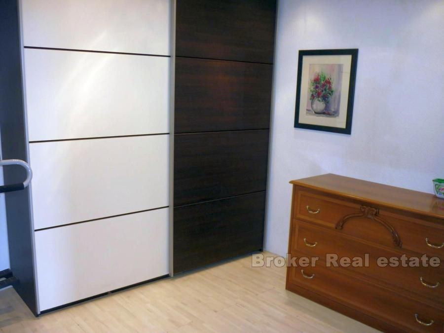 Comfortable apartment in Split, located on the first floor. South orientation, sunny and airy, living area 147m2. It consists of a large living room, dining room and kitchen, two bathrooms, three bedrooms, dressing room, a large hall and a terrace of 45 m2. The apartment also has a garage (25m2) and one parking space. Surrounded by greenery in a quiet location offers a breathtaking view of the sea. the possibility of renting (1500 euro / month).