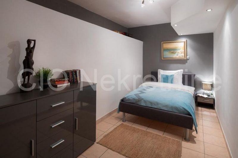 Stan je kompletno renoviran, ukupne površine 143m2, u odličnom stanju bez ulaganja. Stan ima predsoblje, tri spavaće sobe, teretanu, ostavu, veliki dnevni boravak, kuhinju s trpezarijom, dvije kupaonice i veliku terasu površine 50 m2 sa predivnim pogledom i garažu površine 18m2 koja je uključena u cijenu. Vlasništvo je uredno.