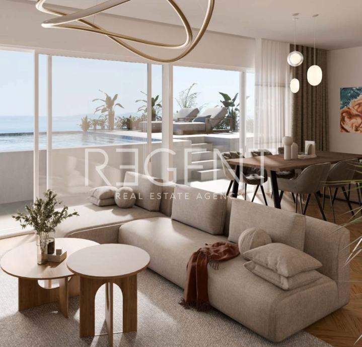 Na jednoj od najprestižnijih lokacija u Splitu smješten je projekt Villa Mareterra, suvremena novogradnja osmišljena za udoban i siguran život. Život na Mejama znači prestiž, privatnost i neposrednu blizinu mora, Marjana i centra grada, a upravo ta kombinacija mira i praktičnosti čini ovu lokaciju savršenom za obitelji, parove i pojedince koji traže više od stana – žele dugoročnu vrijednost i luksuzan životni stil.Stan Mate nalazi se u visokom prizemlju i prostire se na ukupno 177,95 m², od čega 130,87 m² čini interijer, a 47,08 m² terasa i pripadajući vrt. Raspored je osmišljen tako da pruža maksimalnu udobnost i funkcionalnost – prostrani dnevni boravak s blagovaonicom i izlazom na terasu, moderna kuhinja s ostavom, tri spavaće sobe te tri kupaonice. Privatni vrt i velika terasa omogućuju uživanje u mirnom okruženju i zelenilu, što stan čini posebno atraktivnim.Kvaliteta gradnje i opreme vidljiva je u svakom detalju: dizalica topline s podnim grijanjem, multi-split sustav klimatizacije na daljinsko upravljanje, Schüco aluminijska stolarija s električnim roletama, parket i keramika prve klase, sobna vrata sa skrivenim dovratnicima te sanitarna oprema premium razine. Stanu pripada i spremište u podrumu, dok su garažna mjesta opremljena priključcima za punjenje električnih vozila.Zgrada je projektirana kao slobodnostojeća s dvije podzemne etaže garaže, prizemljem, tri kata i penthouseom, a ukupno broji samo osam stambenih jedinica, što dodatno osigurava privatnost i mir. Svaka jedinica ima svoju terasu, a raspored stanova osigurava optimalnu orijentaciju i obilje prirodnog svjetla. Završetak radova planiran je u roku od 30 mjeseci od početka gradnje, a useljenje po ishođenju uporabne dozvole. Način plaćanja predviđen je po fazama – 30 % po potpisu predugovora, 40 % nakon završetka konstrukcije i 30 % po završetku fasade, uz mogućnost dogovora s kupcem.Stan Mate idealan je izbor za sve koji traže luksuzan i prostran dom s privatnim vrtom u srcu Splita, na lokaciji koja nikada ne gubi na vrijednosti. Cijena garažnog mjesta iznosi 50.000,00 € te ostave 25.000,00 €.Za sve dodatne informacije, kaa i dogovor o razgledavanju, slobodno nas kontaktirajte.Za više informacija, kontaktirajte našeg agenta na brojeve telefona: