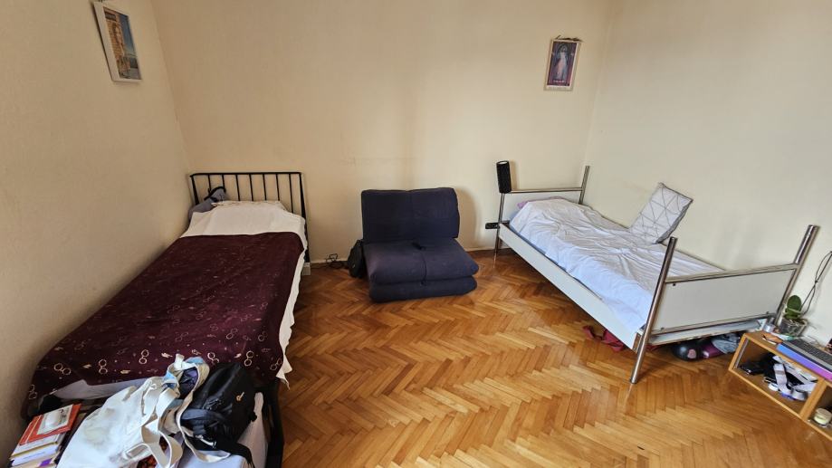 Na prodaju je dvosoban stan na vrlo atraktivnoj poziciji u Splitu. Nalazi se drugi red od mora i zapadne obale, dvije minute hoda od Dioklecijanove palače. Stan je smješten na etaži prvog kata od ukupno 4. Sastoji se od većeg ulaznog prostora, dvije spavaće sobe, kuhinje s blagovaonicom, kupaonice, dvije ostave u podrumu (7,5 + 4m2) i prostora u krovištu od 17,5m2. Stropovi su visine 3m. Stanu je potrebna adaptacija. Ima pogled na more i gradsku luku. Napravljeno je novo idejno rješenje, može se vidjeti i novo i staro stanje tlocrta u slikama. Kupac plaća agencijsku naknadu 3%.