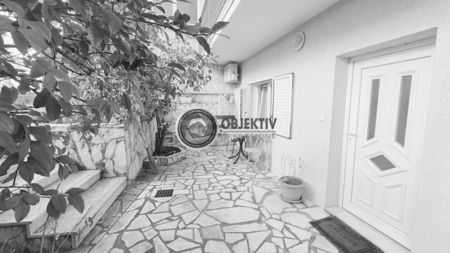 Prizemni stan ima izlaz u dvorište s kaminom i vrt koji se prostire gotovo cijelom južnom stranom parcele.