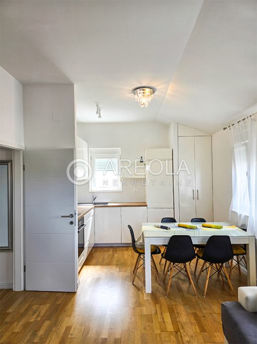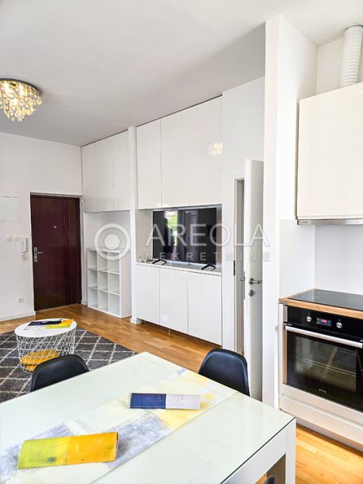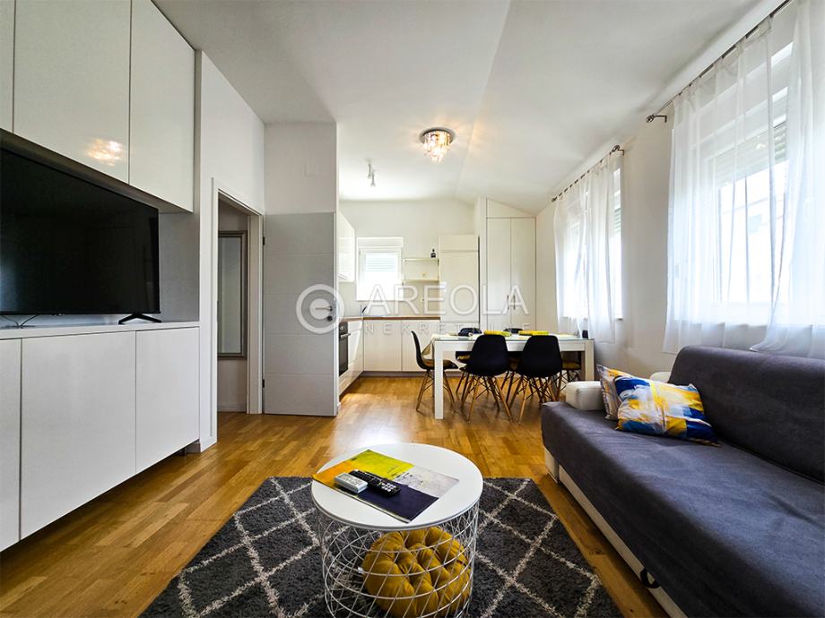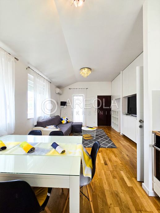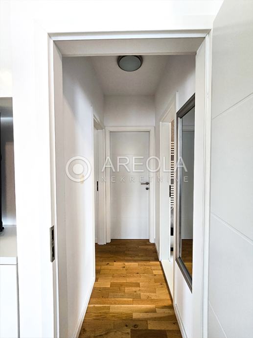 U potpunosti je opremljen novim aparatima. S pažljivo izrađenim namještajem po mjeri, svaki dio stana maksimalno je iskorišten kako bi pružio funkcionalnost. Južna orijentacija i obilje prozora unose prirodnu svjetlost tijekom cijelog dana, stvarajući svijetao i osunčan ambijent.