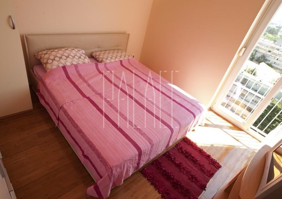 Na prodaju je komforan stan ukupne površine 79 m2 smješten u neboderu na dvanaestom katu. Stan je južne orijentacije, prepun svjetla i kompletno renoviran. Sastoji se od dnevnog boravka, kuhinje, blagovaonice, dvije spavaće sobe, kupaonice, toaleta i ostave. Iz stana se pruža predivan pogled na cijeli Split. Ispred zgrade nalazi se javni parking. Lokacija stana je u pješačkoj zoni do centra grada, te osim za stanovanje, pruža mogućnost korištenja stana u turističke svrhe. Vlasništvo uredno.