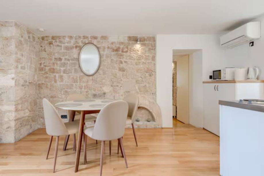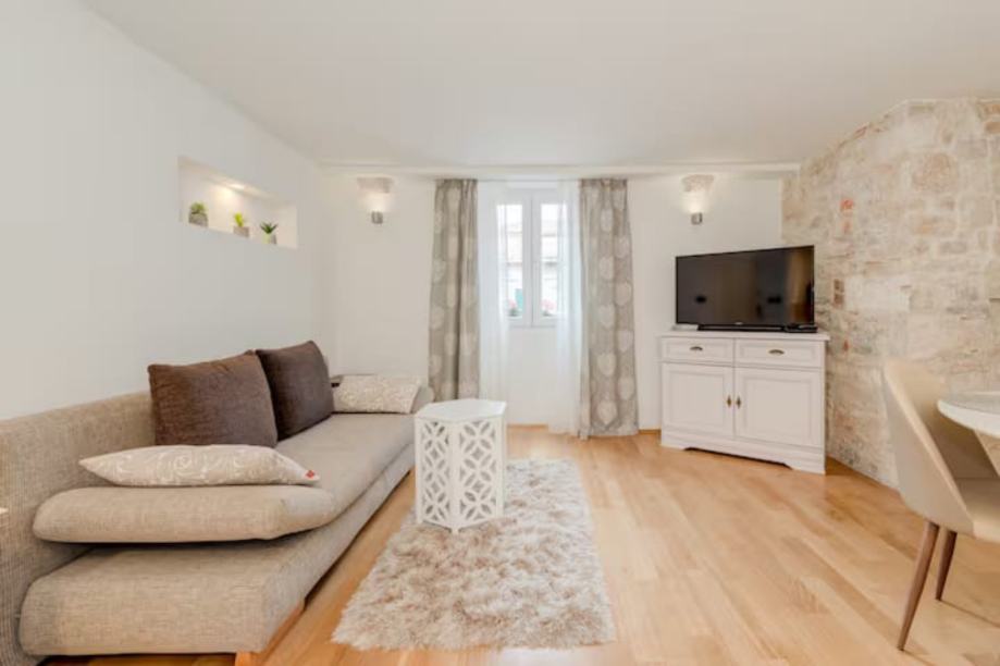 Iznajmljujemo jednosobni stan povrsine 35m2 polozen na drugom katu kamene kuce u Dioklecijanovoj palači u srcu Splita.