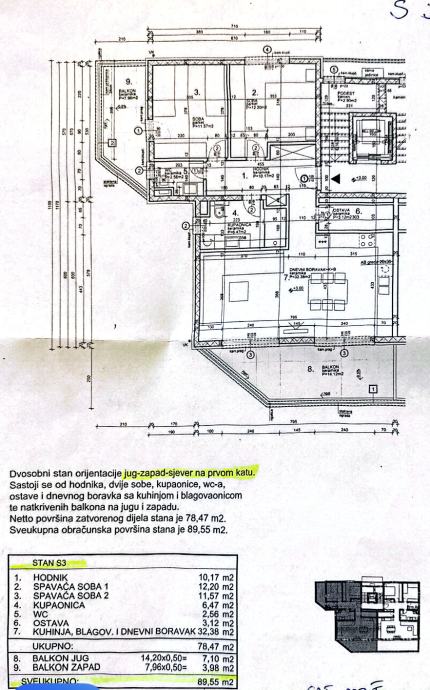 Split, Pazdigrad, lijep i komforan stan položen na prvom katu manje zgrade u izgradnji.Stan se sastoji od hodnika, dvije spavaće sobe, kupaonice, toaleta, ostave, prostranog dnevnog boravka s kuhinjom i blagovaonicom te natkrivenih balkona na jugu i zapadu. Površina zatvorenog dijela stana...