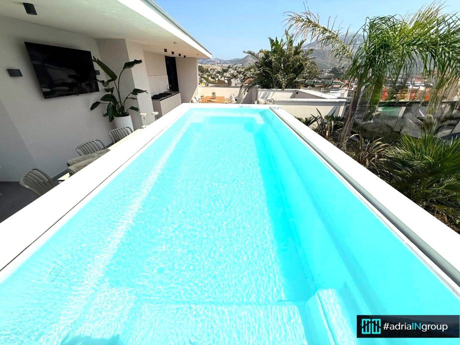 Privatni bazen, vrt i pogled - sve na zadnjem katu urbane novogradnje s liftom.