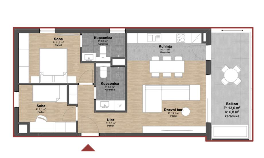 Split - Podstrana | Stambena zgrada s devet modernih stambenih jedinica - drugi red od mora.Na prodaju je atraktivna stambena zgrada s ukupno devet stambenih jedinica, smještena na iznimno poželjnoj lokaciji u drugom redu od mora u Podstrani.Projekt je osmišljen i bit će izveden prema najvišim građevinskim standardima, uz pažljivo birane materijale i suvremena tehnička rješenja koja osiguravaju udobnost, sigurnost i visoku kvalitetu stanovanja.Iznimna lokacija omogućuje da svaki stan i svaka etaža uživaju u otvorenom i trajno nesmetanom pogledu na more.B - S4 | Dvosoban stan na drugom katuStan se sastoji od ulaznog hodnika, dvije spavaće sobe ( od kojih jedna s pripadajućom kupaonicom ), kupaonice, kuhinje s blagovaonicom i dnevnog boravka. Stambena površina iznosi 56, 46 m².Dnevni boravak ima izlaz na natkriveni balkon površine 13, 64 m².Ukupna neto površina stana s garažnim mjestom iznosi 72, 28 m².U cijenu je uključeno jedno garažno parkirno mjesto, te postoji mogućnost kupnje dodatnog parkirnog garažnog mjesto po cijeni od 30 000 eura.Mikrolokacija je iznimna - svega nekoliko koraka do mora, uređenih plaža i nove šetnice koja povezuje cijelu Podstranu, kao i blizina svih potrebnih sadržaja (javni prijevoz, trgovine, restorani, kafići i dr.).Za sve dodatne informacije stojimo Vam na raspolaganju....