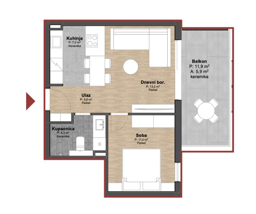 Split - Podstrana | Stambena zgrada s devet modernih stambenih jedinica - drugi red od mora.Na prodaju je atraktivna stambena zgrada s ukupno devet stambenih jedinica, smještena na iznimno poželjnoj lokaciji u drugom redu od mora u Podstrani.Projekt je osmišljen i bit će izveden prema najvišim građevinskim standardima, uz pažljivo birane materijale i suvremena tehnička rješenja koja osiguravaju udobnost, sigurnost i visoku kvalitetu stanovanja.Iznimna lokacija omogućuje da svaki stan i svaka etaža uživaju u otvorenom i trajno nesmetanom pogledu na more.B - S8 | Jednosoban stan na trećem katuStan se sastoji od spavaće sobe, kupaonice, kuhinje s blagovaonicom i dnevnog boravka. Stambena površina iznosi 39, 12 m².Dnevni boravak ima izlaz na natkriveni balkon površine 11, 88 m².Ukupna neto površina stana s garažnim mjestom iznosi 52,06 m².U cijenu je uključeno jedno garažno parkirno mjesto.Mikrolokacija je iznimna - svega nekoliko koraka do mora, uređenih plaža i nove šetnice koja povezuje cijelu Podstranu, kao i blizina svih potrebnih sadržaja (javni prijevoz, trgovine, restorani, kafići i dr.).Za sve dodatne informacije stojimo Vam na raspolaganju....