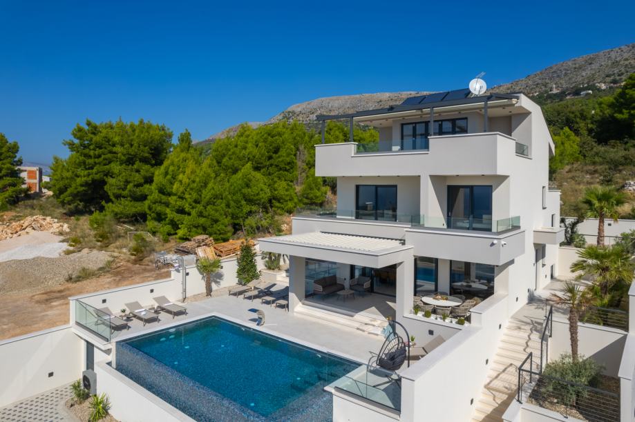 SPLIT PODSTRANA WE MEDIATE IN THE SALE OF A LUXURY VILLA WITH A SWIMMING POOL AND A PANORAMIC VIEW OF THE SEA AND THE ISLANDS.