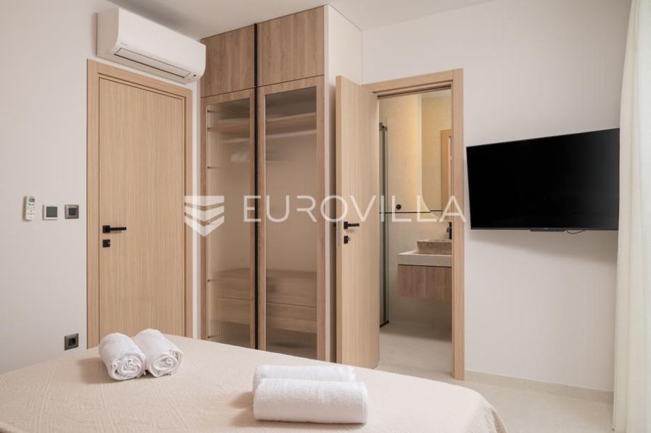 Vila s bazenom modernog dizajna, visokog standarda kvalitete gradnje i stupnja opremljenosti, smještena na uzvisini, s prekrasnim panoramskim pogledom na more. Bruto površina kuće od 320 m2, smještena je na parceli veličine 600 m2, svega 800 m od mora. Ova vila na tri etaže nudi i bazen...