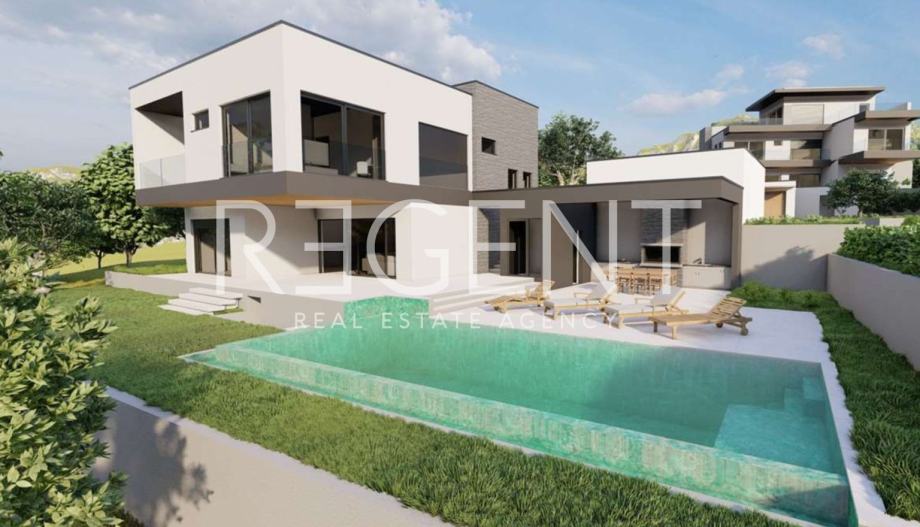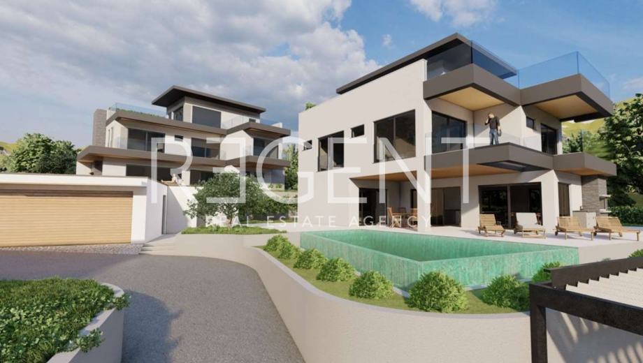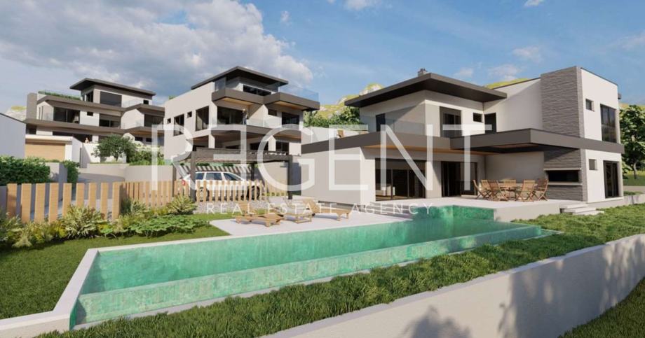 U Podstrani nedaleko Splita smjestilo se luksuzno stambeno naselje koje se sastoji od ukupno 4 vile: ”Olive Residence”, ”Fig Residence”, ”Vila Badem” i ”Vila Smokva” – ukupne površine 3.081 m2. Vila u luksuznom naselju ukupne stambene površine 290 m2, na tri etaže.Sastoji se od: PRIZEMLJA u kojem se nalazi: kuhinja, open space dnevni boravak s blagovaonicom, hodnik, ostava, WC, praonica/vešeraj i dvije natkrivene terase.KAT: tri spavaće sobe, tri kupaonice i dva balkona.2.KAT: master spavaća soba s kupaonicom i saunom, te dvije terase.Vila sadrži i veliki bazen (45 m2), vanjsku kuhinju, dva parkirna mjesta, 107 m2 popločane površine, te 236 m2 zelene površine. Površina zemljišta je 605 m2.Trenutno se nalaze u fazi izgradnje, a završetak izgradnje vila planiran je do kraja 2024. godine.Stambeno naselje nalazi se u Podstrani s pogledom prema moru i Splitu.Okolica naselja je izgrađena stambenim kućama, novim vilama i neizgrađenim zelenim površinama (pretežno maslinici i voćnjaci).Za više informacija, kontaktirajte našeg agenta na brojeve telefona: