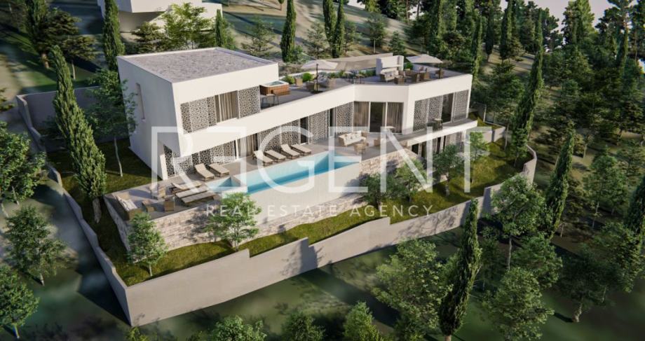U Donjoj Podstrani, svega nekoliko minuta od mora i plaže, smještena je projekt moderne vila s otvorenim pogledom na more i Split. Vila je projektirana kao samostojeći objekt katnosti suteren, prizemlje i kat, ukupne stambene površine 375 m², s privatnim bazenom od 47,8 m². Velike staklene stijene povezuju dnevne prostore s vanjskim terasama, stvarajući savršen spoj interijera i mediteranskog ambijenta.Raspored prostorija predviđa više spavaćih soba i prostranu dnevnu zonu, završnih materijala i detalja uređenja. Posebnosti vile uključuju ravni krov, suvremeni arhitektonski dizajn, bazen smješten prema moru i terase koje osiguravaju privatnost i panoramski pogled.U suterenu se nalazi garaža povezana s unutarnjim stubištem, veliko spremište, strojarnica, praonica te sauna s tušem i prostorom za odmor. Prizemlje čini prostrani ulazni hodnik s garderobom iz kojeg se ulazi u otvoreni dnevni prostor s kuhinjom i blagovaonicom, a cijela zona povezana je s terasom i bazenom. Na ovoj etaži nalazi se i spavaća soba s vlastitom kupaonicom te dodatna kupaonica za goste. Na katu je smještena master spavaća soba s garderobom, kupaonicom i loggiom, dvije spavaće sobe s vlastitim kupaonicama te radna ili multifunkcionalna soba, dok hodnik vodi do dodatne loggie s pogledom na more.Lokacija je jedna od najvećih prednosti projekta – mirna rezidencijalna zona, okružena obiteljskim kućama i zelenilom, pruža osjećaj privatnosti, a u neposrednoj blizini nalaze se trgovine, restorani, marina i šetnice uz more. Centar Splita udaljen je svega 15 minuta vožnje, dok je zračna luka Split dostupna u manje od pola sata, što dodatno povećava atraktivnost vile za život i investiciju.Građevinska dozvola je pravomoćna te se gradnja može odmah započeti.Ova vila predstavlja idealan izbor za obitelji i investitore koji traže luksuznu nekretninu s bazenom i otvorenim pogledom na more na jednoj od najpoželjnijih lokacija u blizini Splita.Za više informacija, kao i dogovor o razgledavanju, slobodno nas kontaktirajte!Za više informacija, kontaktirajte našeg agenta na brojeve telefona: