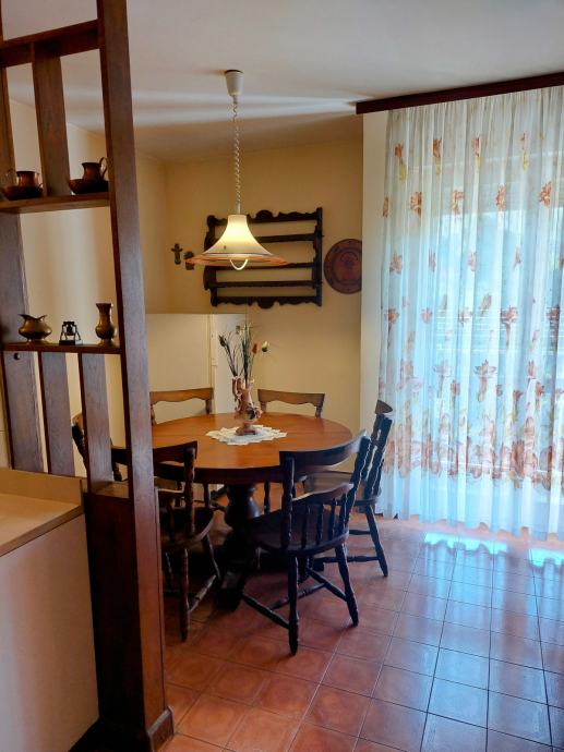 Stan se sastoji od: prostranog hodnika, velikog dnevnog boravka, kuhinje s blagavaonicom, 2 spavaće sobe, balkon, kupaonice sa WC-om, zasebnog WC-a, ostave te pripadajuće drvarnice.