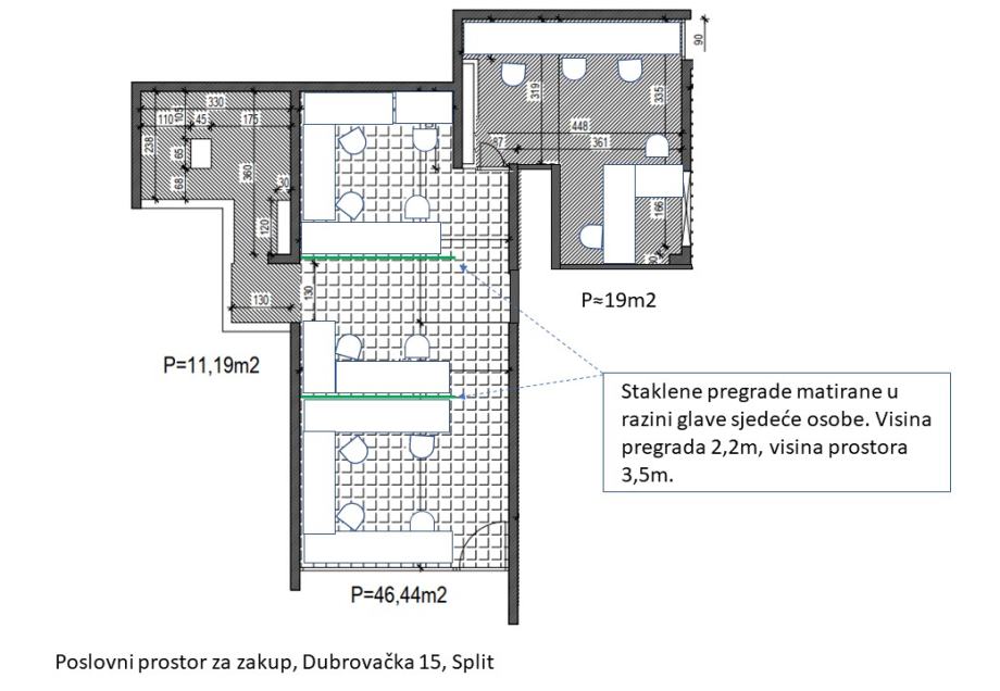 - jedne veće prostorije (46,44 m2),