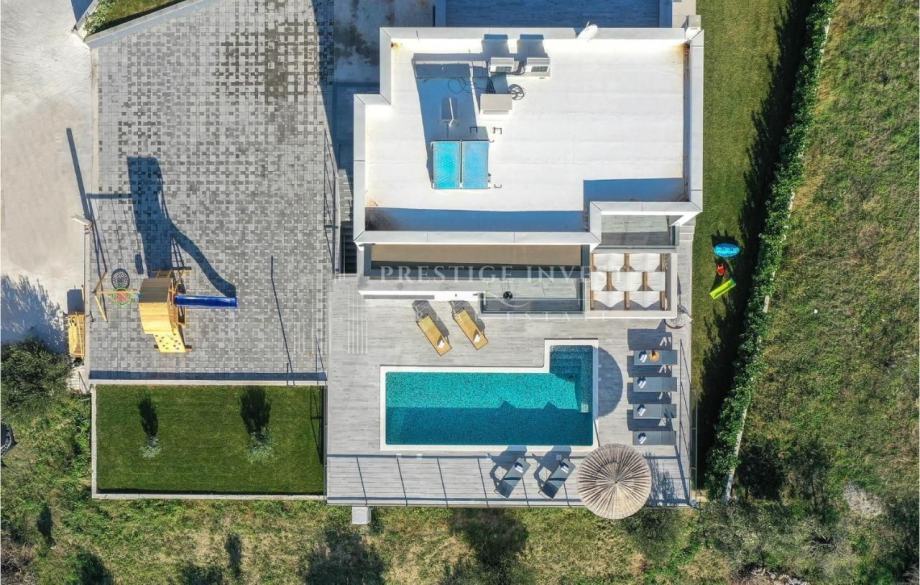 Vila se prostire na zemljištu površine 978m2, od kojih je 195m2 je stambenog prostora i 785 m2 vrta i okučnice s bazenom od 44m2.