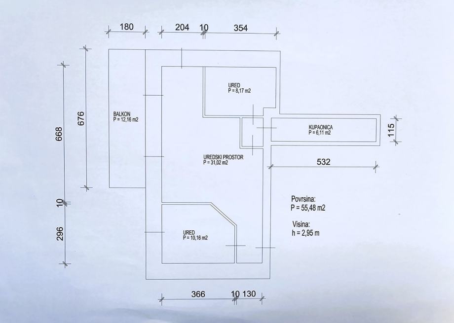 Atraktivni uredski prostor unutrašnje površine 55,46 m2, smješten na 2. katu zgrade na Rivi, s balkonom površine 12,16 m2, sjeverne orijentacije, za dugoročni najam - 1.500 EUR/mjesec + režije.