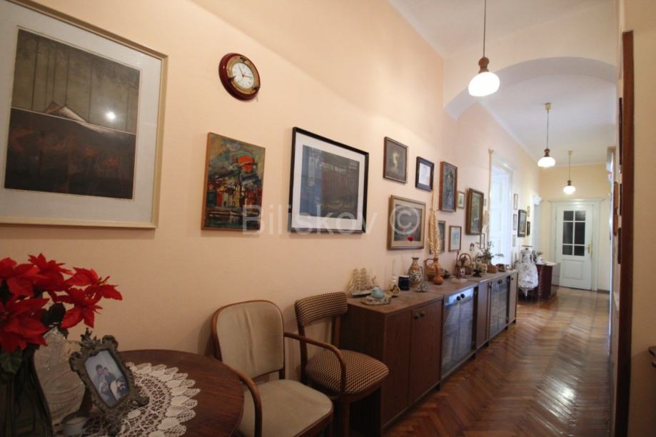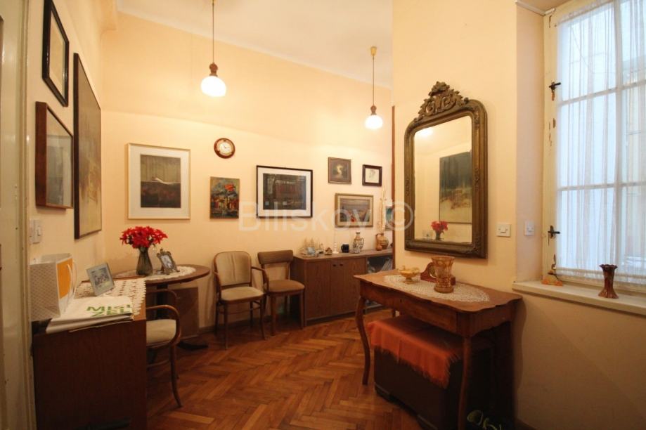 Sastoji se od dvije sobe na jugu, treće sobe i kuhinje s blagovaonicom na sjeveru, a kupaonica i ostava (ranije djevojačka soba) imaju prozore u svjetlarnicima.