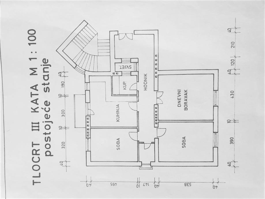 Zgrada je izgrađena 1938, a stan je renoviran prije 30godina i održavan. Visina stropa je 4,35m, te je stan izuzetno prostran i svijetao. Iz kuhinja se na jednu stranu pruža pogled na Marjan, a preko dnevnog boravka na more.