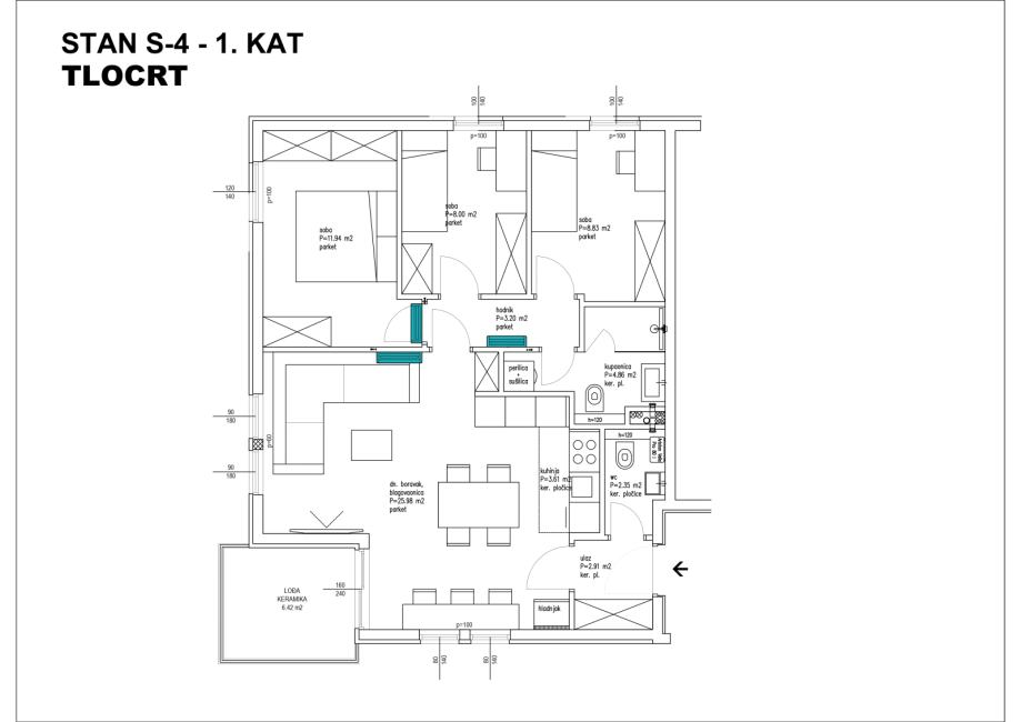 Novogradnja ,,ključ u ruke’’, Trosoban stan S4 na etaži 1. kata , Površine 76,50 m2