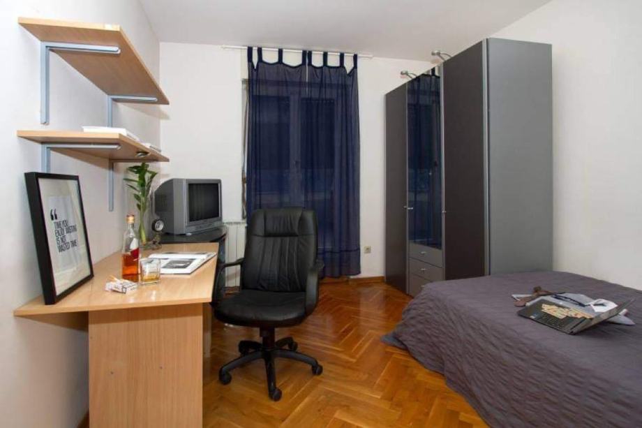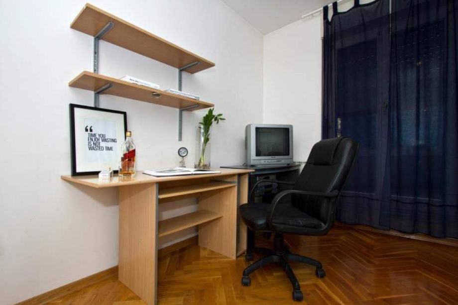 Četverosoban stan sastoji se od 2 kupaonice, 2 veća balkona (po cca 8m2), jedan manji u sobi, kuhinja, blagovaonica, dnevni, ostava. Stan se iznamljuje u uredske svrhe , te će shodno tome u dogovoru sa najmporimcem biti i uređen. Prostor se nalazi na 1.katu zgrade koja posjeduje lift. Obavezan je polog u visini jednomjesečne najamnine.