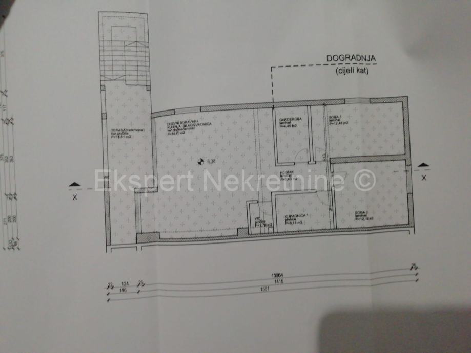 Split, Škrape dvosoban komforan stan na drugom zadnjem katupodne površine 74,06 m2, a sastoji se od dnevnog boravka s blagavaonicom i kuhinjom, hodnika, wc-a, kupaonice, 2 sobe i garderobe.
