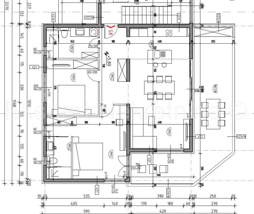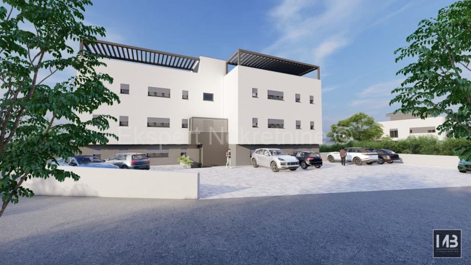 Split,Čiovo,Slatine,blizina plaže komforan dvosoban stan 117 m2 (84 m2 stan plus 32 m2 terase) u novogradnji s zajedničkim bazenom. Stan se nalazi na 2. katu ,orijentacije sjever-istok-jug, a sastoji se od dvije velike spavaće sobe,dva kupatila,hodnika,kuhinje sa blagovaonicom i velikim dnevnim boravkom,te velike terase (32 m2) sa koje ima otvoren panoramski pogled na more.Od mora i plaže stan je udaljen samo 220 m.Stanu pripadaju i dva vanjska parking mjesta.Gradnja započeta,a završetak gradnje predviđen za ljeto 2026.g .Kvalitetna gradnja(podno grijanje u cijelom stanu,klima uređaj u svakoj prostoriji, kvalitetna keramika i sanitarije,itd..). Mogućnost odabira opreme po vlastitom izboru.Mirna lokacija blizu prelijepe plaže i centra mjesta.Plaćanje po fazama gradnje. Za više info kontaktirati agenciju.