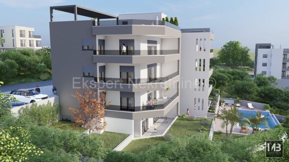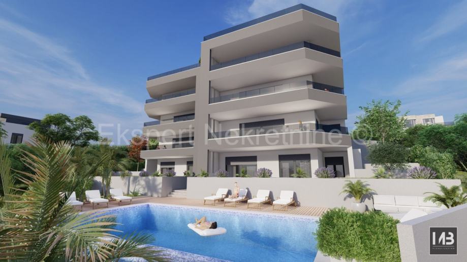 Split,Slatine,komforan 2-soban stan 117 m2,pogled na more,bazen (prodaja)