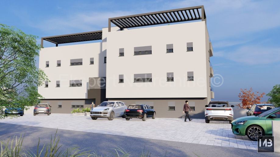Split,Čiovo,Slatine,blizina plaže komforan dvosoban stan 117 m2 (84 m2 stan plus 32 m2 terase) u novogradnji s zajedničkim bazenom. Stan se nalazi na 1. katu ,orijentacije sjever-istok-jug, a sastoji se od dvije velike spavaće sobe,dva kupatila,hodnika,kuhinje sa blagovaonicom i velikim dnevnim boravkom,te velike terase (32 m2) sa koje ima otvoren pogled na more.Od mora i plaže stan je udaljen samo 220 m.Stanu pripadaju i dva vanjska parking mjesta.Gradnja započeta,a završetak gradnje predviđen za ljeto 2026.g .Kvalitetna gradnja(podno grijanje u cijelom stanu,klima uređaj u svakoj prostoriji, kvalitetna keramika i sanitarije,itd..). Mogućnost odabira opreme po vlastitom izboru.Mirna lokacija blizu prelijepe plaže i centra mjesta.Plaćanje po fazama gradnje. Za više info kontaktirati agenciju.