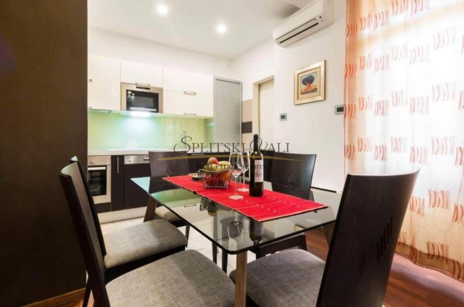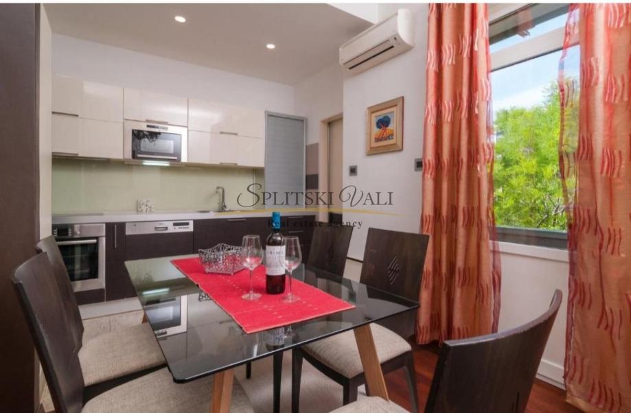 Ovoj luksuznoj nekretnini pripadaju dvije spavaće sobe, kuhinja s blagovaonicom i ostavom, dnevni boravak, ostava, kupatilo, wc, lođa te balkon. Sve opremljeno vrhunskim namještajem.