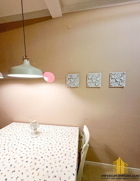 - Prostorije: Stan se sastoji od kuhinje s blagovaonicom, modernog kupatila, dnevnog boravka, spavaće sobe s ugradbenim ormarom, te prostranog, sunčanog balkona.