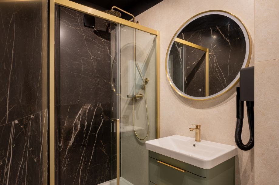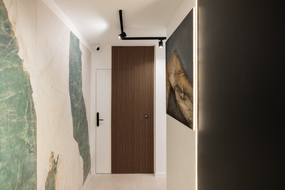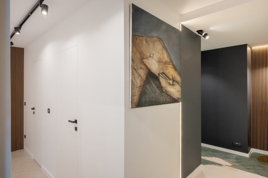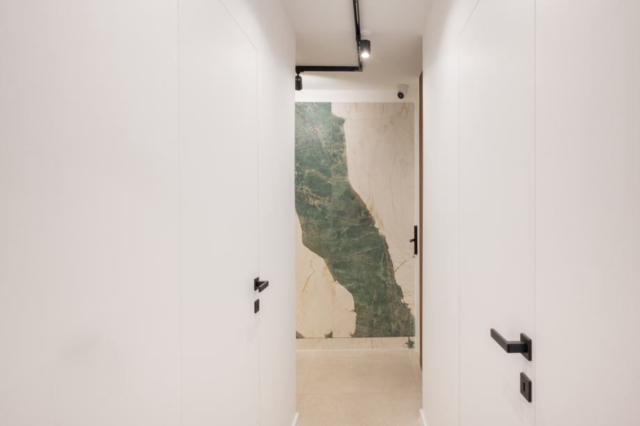 Stan je trenutno podijeljen u dvije apartmanske jedinice, no vrlo jednostavno se može vratiti u prvotni raspored – trosobni stan s 3 kupaonice i praonicom, što je i bila originalna projektna zamisao.