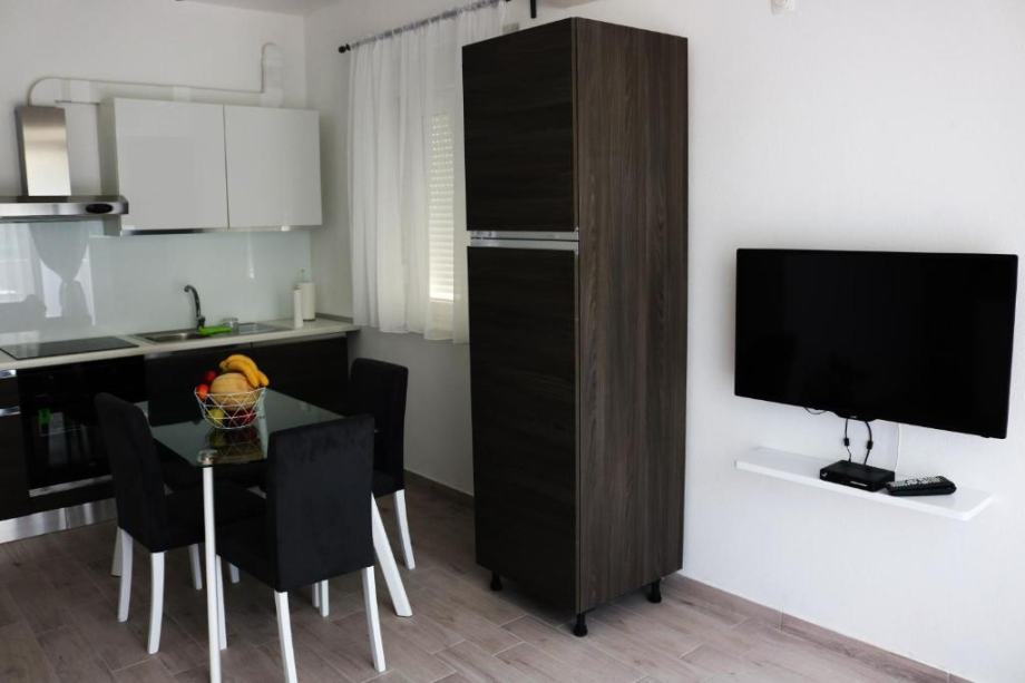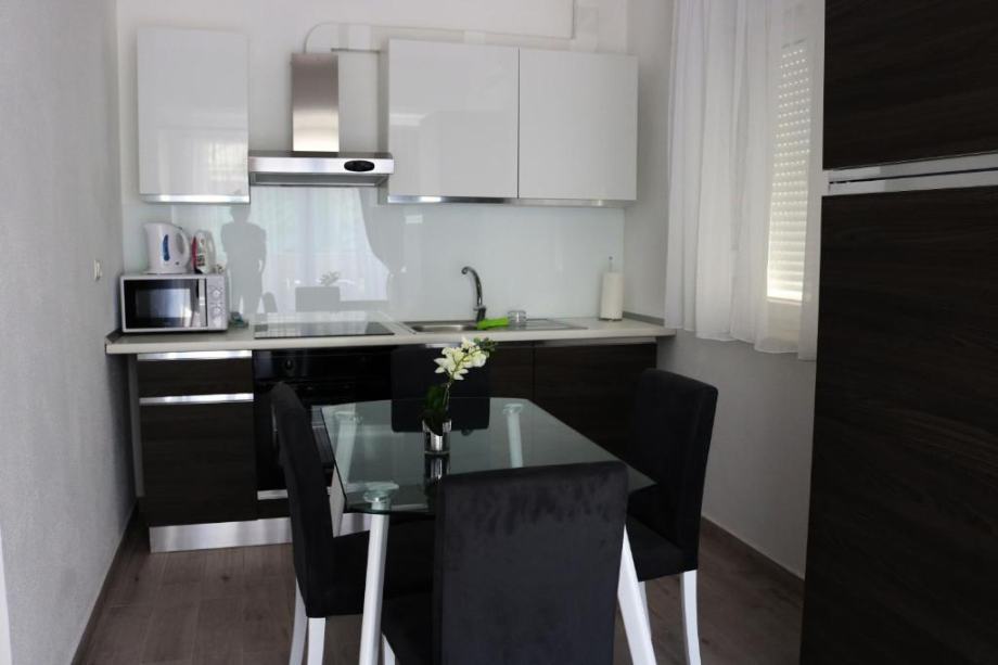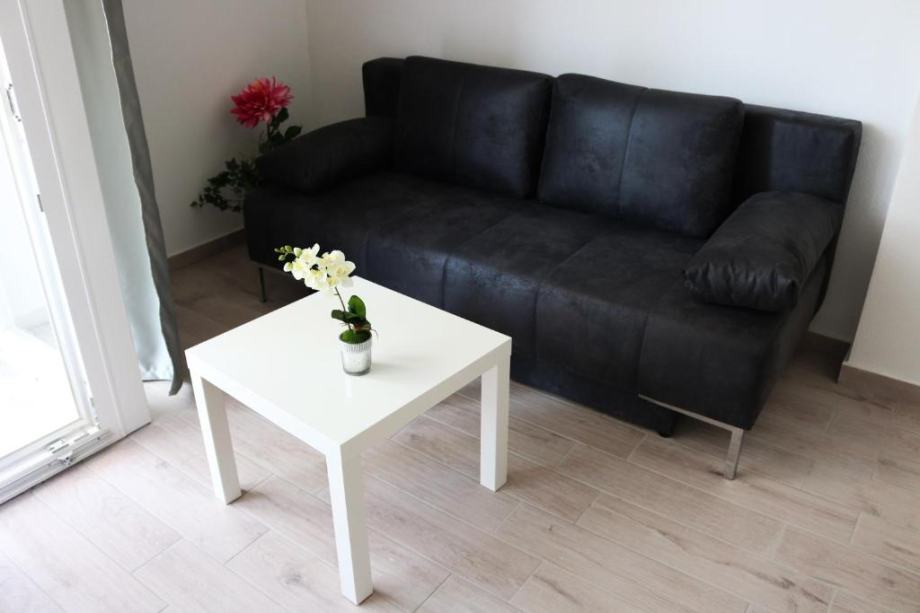 Two bedroom apartment, situated on the high ground floor, residential building. Apartment consist of: 2 bedrooms, living room, kitchen with dining room, balcony and bathroom. Apartment is fully furnished and equipped with all needed devices.