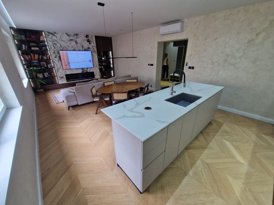 Kompletna renovacija ukljucujuci nalivanje spregnute betonske ploce, podno grijanje na vodu, smart house elektricni sistem upravljanja rasvjetom, grijanjem, roletama... finalizirana je 2024. godine.
