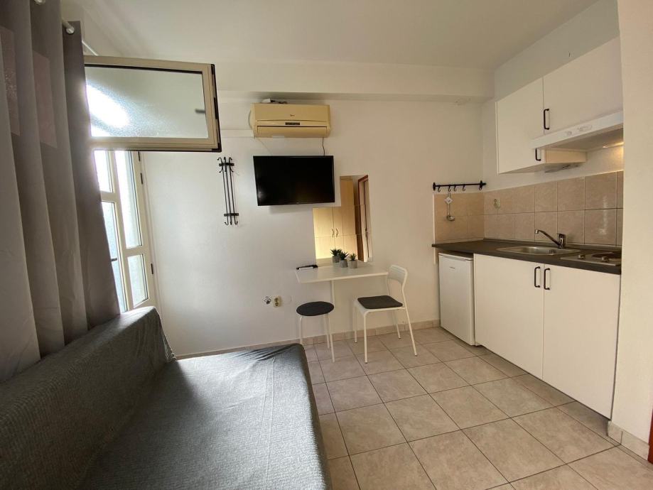 Garsonijera ima 13 m2 i opremljena je svim osnovnim sadržajima za ugodan boravak. U prostoru su dostupni wifi, TV i klima uređaj, perilica rublja, sve je organizirano funkcionalno i praktično.