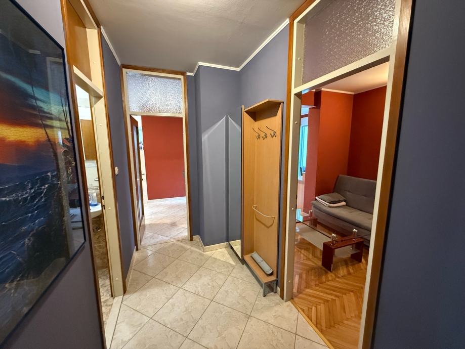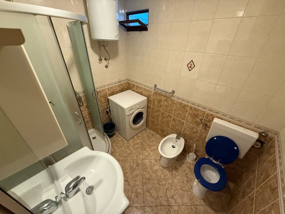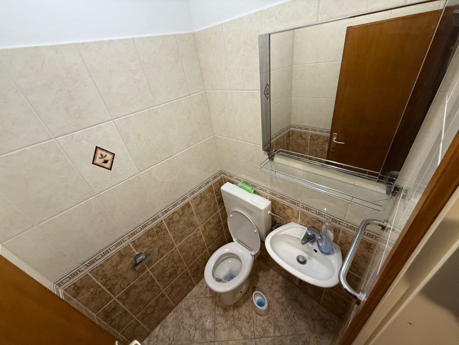 Posebna prednost stana su dva sanitarna čvora. Jedan je odvojeni toalet smješten u hodniku, dok se u drugom dijelu stana nalazi kupaonica s WC-om i tuš kabinom, opremljena perilicom rublja. Kuhinja je u potpunosti opremljena svim potrebnim aparatima, uključujući perilicu posuđa, te je stan kompletno namješten i spreman za useljenje bez dodatnih ulaganja.