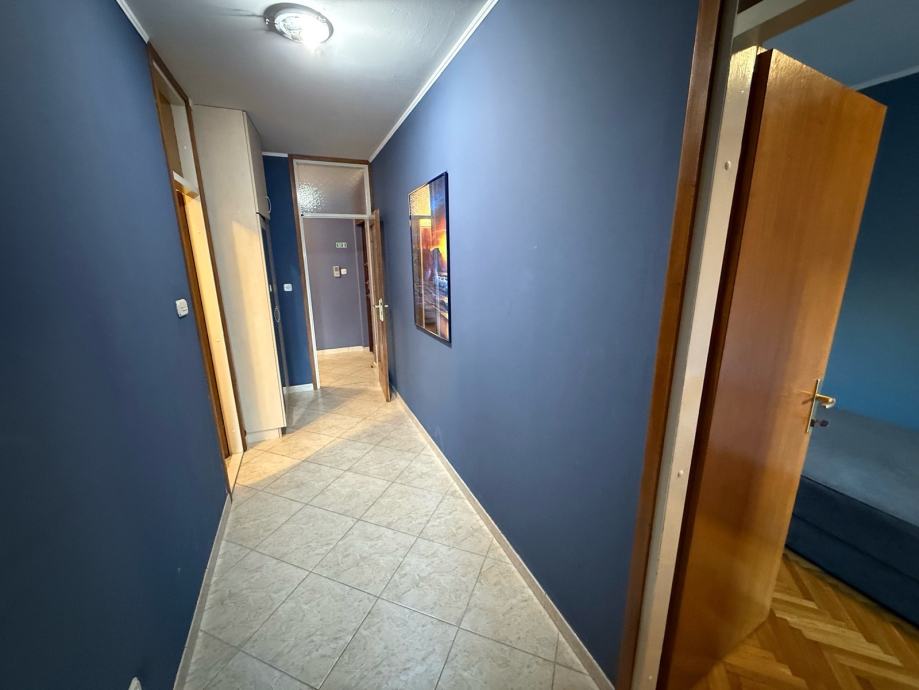Stan ima ukupno 90 m2 i odlikuje se vrlo funkcionalnim i promišljenim rasporedom prostorija. Ulazni hodnik vodi u odvojeni dnevni boravak s kaučem na razvlačenje, dok je kuhinja odvojena, prostrana i povezana s blagovaonicom te ima izlaz na loggiu. Stan raspolaže s tri odvojene spavaće sobe, od kojih je jedna opremljena bračnim krevetom, druga s dva odvojena kreveta i izlazom na balkon-terasu, dok je treća soba također zasebna i jednako komforna s izlazom na vlastitu balkon terasu. Ukupno stan ima tri balkona i jednu loggiu, što osigurava obilje svjetla i prozračnost u svim prostorijama.