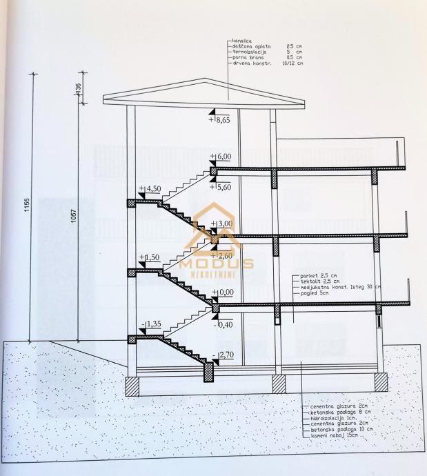 Visoko prizemlje i prvi kat, sadrže po veliki komforni trosoban stan, te na drugom katu komforan jednosoban stan s vekim terasom od 65 m2.