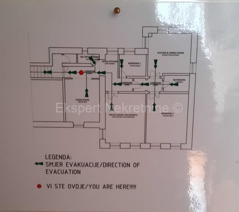 Ima tri spavaće sobe,kuhinju s blagovanom,kupaonu,wc,hodnik te dnevni boravak.