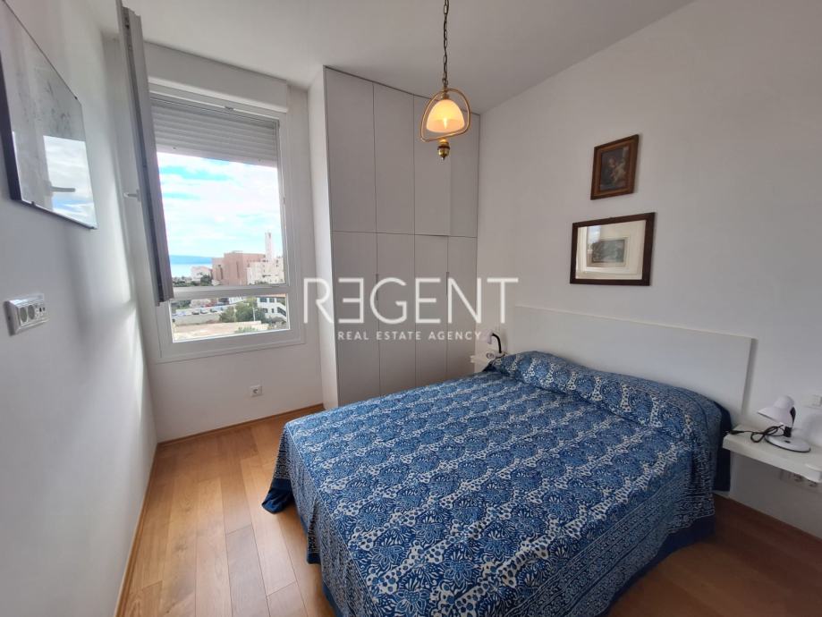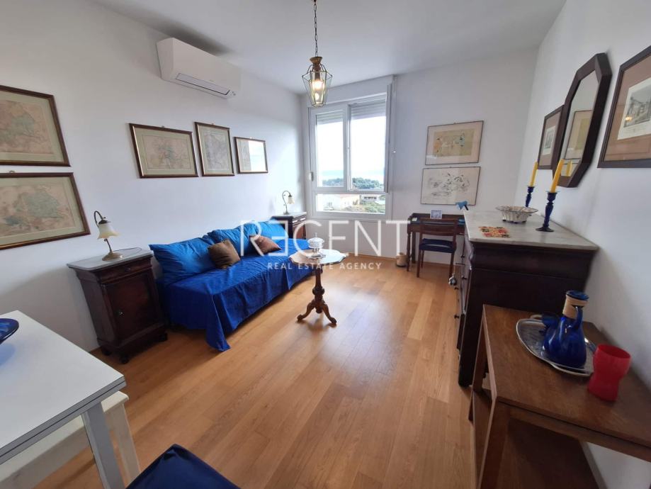 Stan je površine 40m2, a sastoji se od hodnika, kupaonice, kuhinje, dnevnog boravka i spavaće sobe. Osim što nudi život na frekventnoj lokaciji u blizini svih potrebnih sadržaja, također ima i prekrasan pogled na more zbog svoje južne orijentacije.