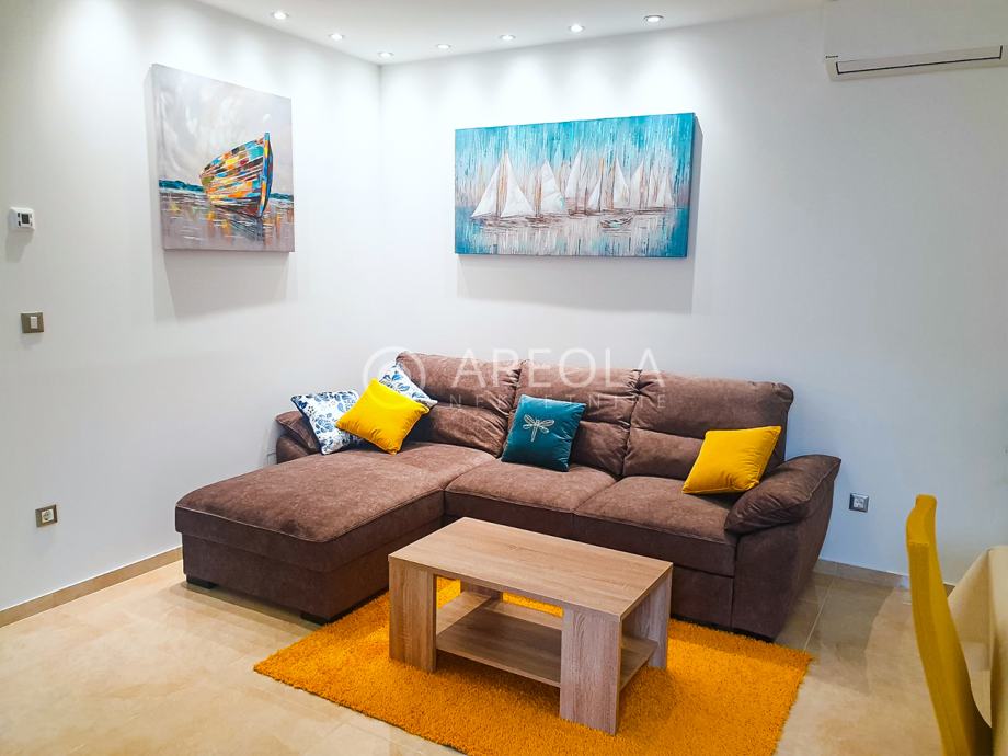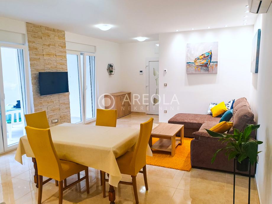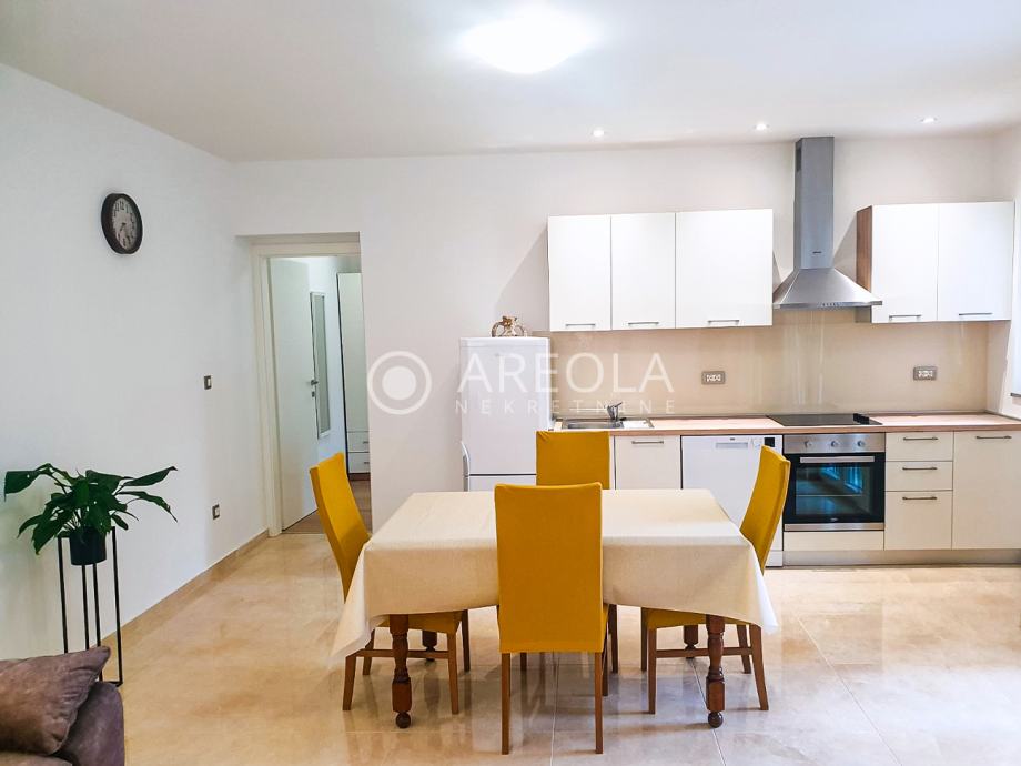Stan je kompletno novoopremljen i lijepo uređen sa svim potrebnim namještajem i opremom (perilica posuđa i rublja, podno grijanje, klima,...)