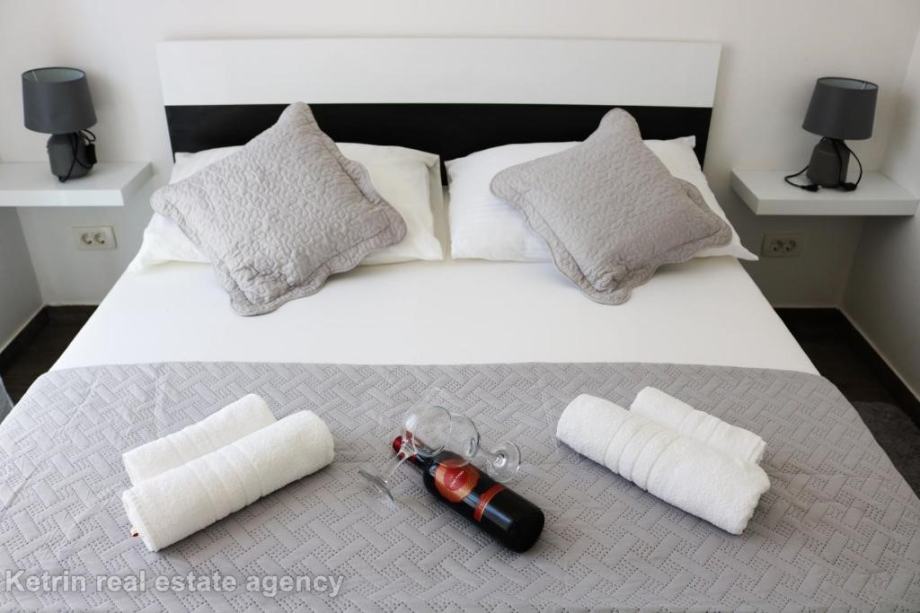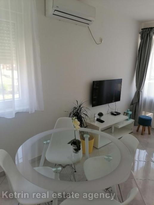 Two bedroom apartment, situated on the first floor, residential building. Apartment consist of: 2 bedrooms, living room, kitchen with dining room and bathroom. Apartment is fully furnished and equipped with all needed devices.