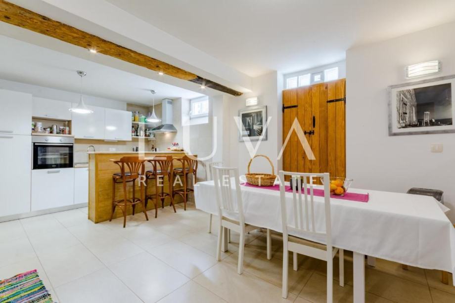 Kuća datira iz 1903. godine, a kompletno je obnovljena 2016. uz pažljivo očuvanje izvornih detalja. Interijer je opremljen suvremenim materijalima i pažljivo biranim namještajem, stvarajući udoban prostor za život, odmor ili turistički najam. Svaki kutak nekretnine promišljeno je osmišljen kako bi pružio maksimalnu funkcionalnost i estetski užitak, uz očuvanu privatnost na potpuno ograđenom posjedu.