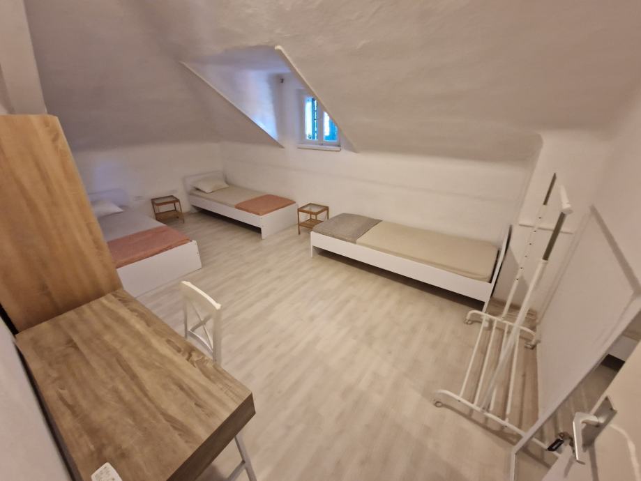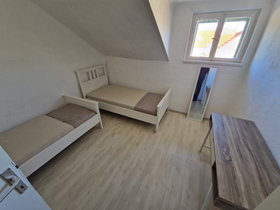 Iznajmljujemo na period od godinu dana stan povrsine 110m2 polozen na drugom katu/poluvisokom potkrovlju stambene zgrade u Varosu pogodan za 14 radnika.