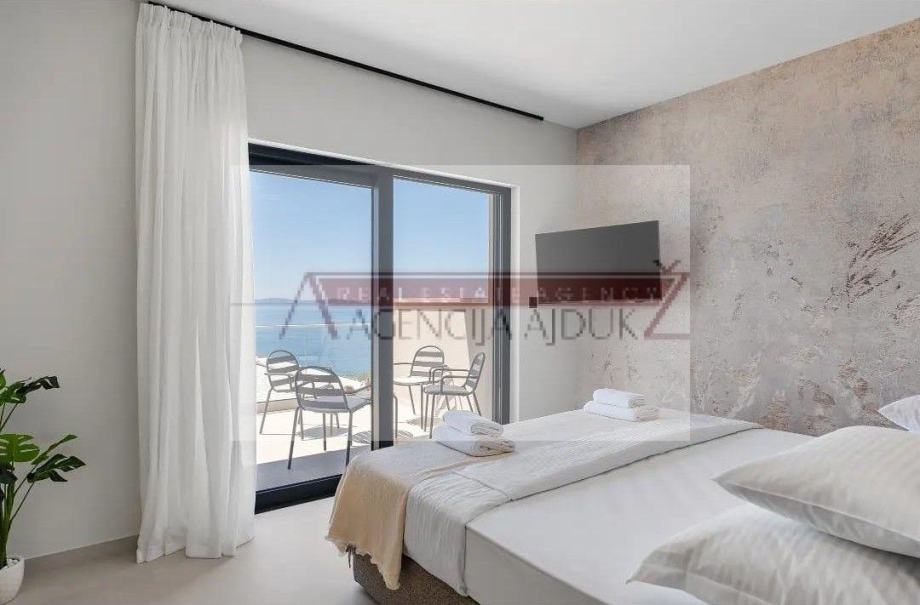 Na prvom katu se nalaze tri velike spavaće sobe, svaka soba posjeduje vlastitu kupaonicu te južne lođe s kojih se pruža prekrasan pogled na more.
