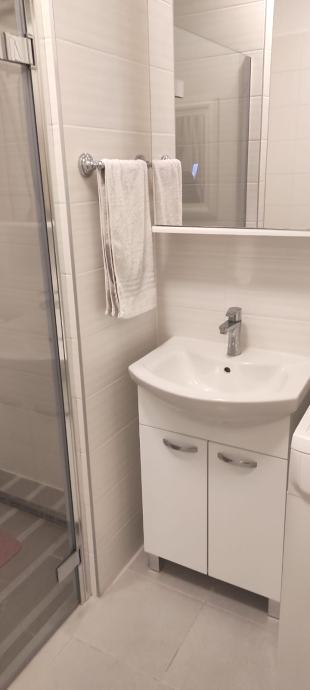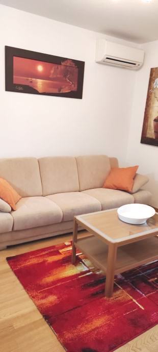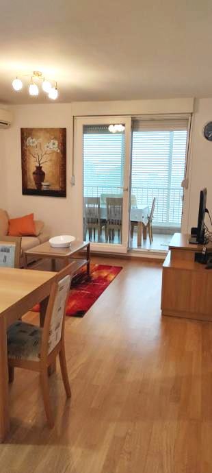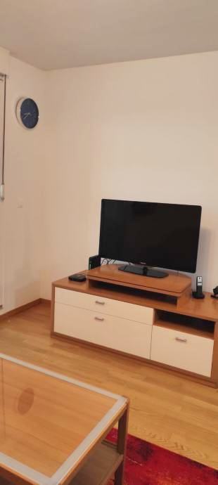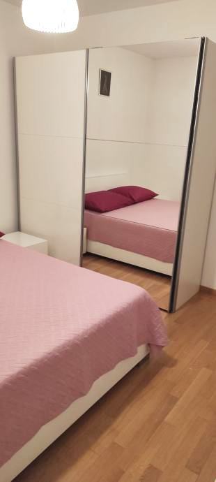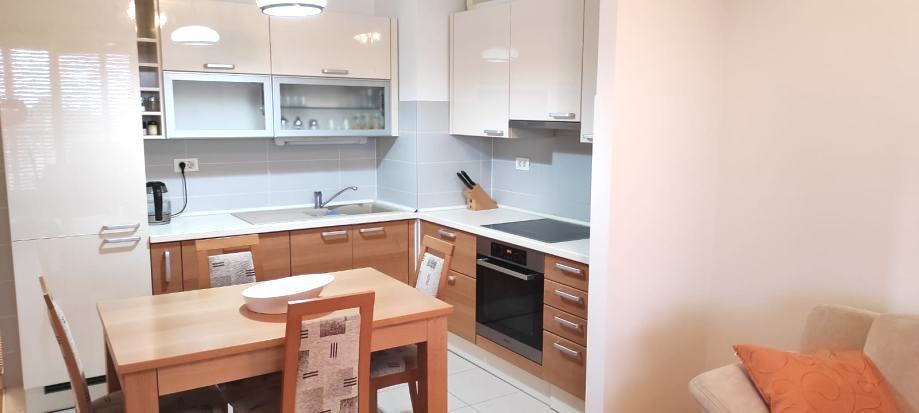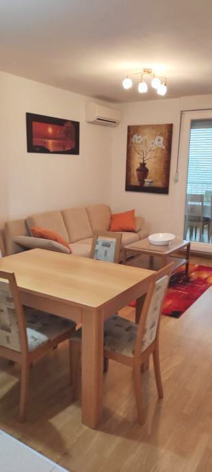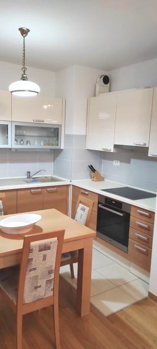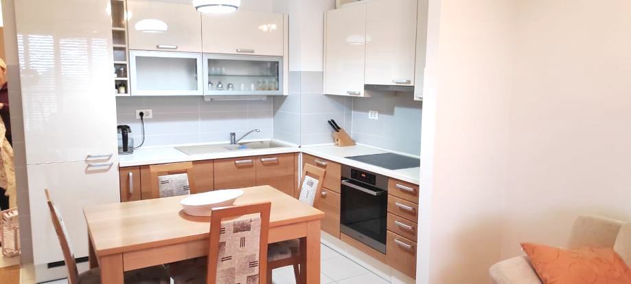 The apartment is located on the first floor of a residential building and has a parking space in the garage, which is connected to the rest of the building by an elevator. It consists of a kitchen with a dining room, a living room with access to a large loggia, a bathroom and two bedrooms with double beds. Nearby are various amenities necessary for a comfortable life; shops, restaurants, public transport station...